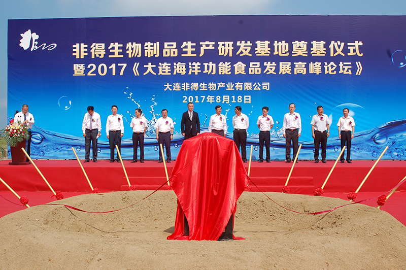 帶著這個(gè)夢(mèng)想,2017年8月,大連非得生物產(chǎn)業(yè)有限公司新的生產(chǎn)和研發(fā)基地項(xiàng)目在大連金普新區(qū)舉行了盛大奠基儀式。項(xiàng)目總投資3.5億元,占地面積約6萬(wàn)平。這個(gè)花園式的產(chǎn)業(yè)基地將包括高標(biāo)準(zhǔn)、全透明符合GMP規(guī)范的生產(chǎn)加工基地、高效率研發(fā)和產(chǎn)業(yè)孵化轉(zhuǎn)化基地和體驗(yàn)式工業(yè)旅游基地,將建立6條海洋肽生物制品提取生產(chǎn)線,與中國(guó)海洋大學(xué)、中科院海洋所、大連工業(yè)大學(xué)、大連海洋大學(xué)、國(guó)家海洋生物工程研發(fā)中心等院校機(jī)構(gòu)建立海洋功能性食品和保健品、海洋藥物及生物醫(yī)用材料、海洋化妝品及個(gè)人護(hù)理品、海洋生物活性物質(zhì)等新興產(chǎn)業(yè)孵化轉(zhuǎn)化基地,志在海濱城市大連打造一座名揚(yáng)天下的“中國(guó)海洋肽谷”。