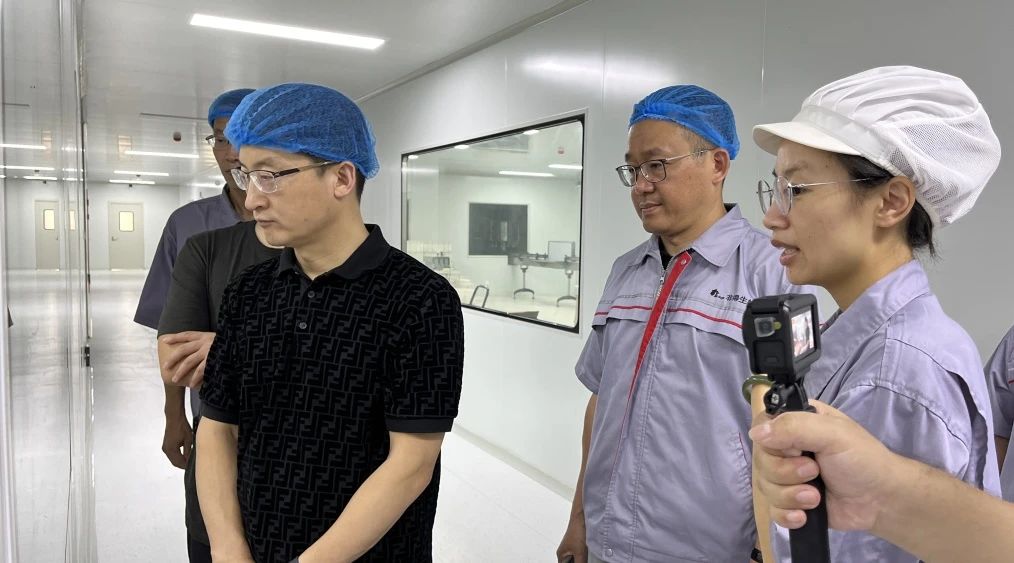 隨后,考察團(tuán)移步至公司核心生產(chǎn)區(qū)域——10萬級GMP標(biāo)準(zhǔn)認(rèn)證的生產(chǎn)車間。高潔凈度的生產(chǎn)環(huán)境、國際領(lǐng)先的自動化生產(chǎn)設(shè)備、嚴(yán)謹(jǐn)規(guī)范的生產(chǎn)工藝流程,充分展現(xiàn)了非得生物在產(chǎn)品質(zhì)量管控與規(guī)?;a(chǎn)上的科技領(lǐng)先地位與雄厚產(chǎn)能優(yōu)勢,贏得了考察團(tuán)成員的一致贊嘆。