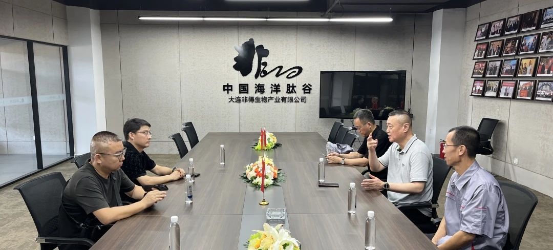 7月29日,大連非得生物產(chǎn)業(yè)有限公司迎來了尊貴的客人——遼寧省陜西商會會長、遼寧省工商聯(lián)青年企業(yè)家委員會主任魏鋒和遼商總會青委會主任、遼寧勝達(dá)環(huán)境資源集團(tuán)董事長錢鑫一行。在董事長李兆明及常務(wù)副總經(jīng)理董禹的熱情陪同下,魏鋒會長一行蒞臨公司進(jìn)行實地走訪調(diào)研,深入了解非得生物在海洋活性肽領(lǐng)域的發(fā)展成就與前沿科技。