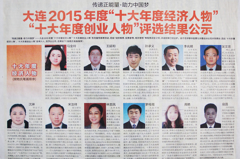 本次年度經(jīng)濟(jì)人物的評(píng)選,是大連國(guó)際商會(huì)、大連市企業(yè)信用研究會(huì)、大連日?qǐng)?bào)社、大連新聞網(wǎng)等權(quán)威機(jī)構(gòu)和媒體平臺(tái)聯(lián)合發(fā)起的,評(píng)選從“創(chuàng)新性、顛覆性、前瞻性、成長(zhǎng)性、新銳性”五大維度,尋找在這個(gè)轉(zhuǎn)型時(shí)代下引領(lǐng)商業(yè)之美、產(chǎn)業(yè)創(chuàng)變、時(shí)代之潮的優(yōu)秀企業(yè)家。