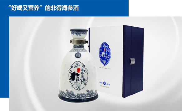海參,特別是大連周邊海域的海刺參,是歷史悠久的海洋食材,素有“海味八珍”之稱。非得公司應(yīng)用特定生物技術(shù)(海參酶解技術(shù),曾獲2005年國家技術(shù)發(fā)明獎二等獎),將海參原料加工成更易溶解的海參肽,并與白酒結(jié)合。